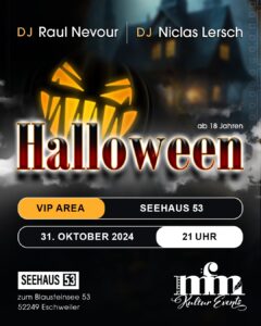 Nach fröhlicher Stimmung folgt die schaurige Halloween-Party. Sei bereit für eine gruselige Atmosphäre und gespenstischer Dekoration, die dir eine Gänsehaut verleihen werden. Verkleide dich und verpasse nicht, Teil dieser schrecklich unterhaltsamen Party zu sein! 👻🕷️🎃